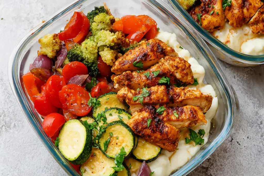 These Air Fryer Chicken Meal Prep Bowls come together in about 30 minutes crispy, boldly seasoned chicken, creamy cauliflower mash, and perfectly sautéed veggies, all portioned and ready before the week even starts. Opening the fridge on a Wednesday to find dinner already handled is exactly the kind of win this recipe delivers, every single time.