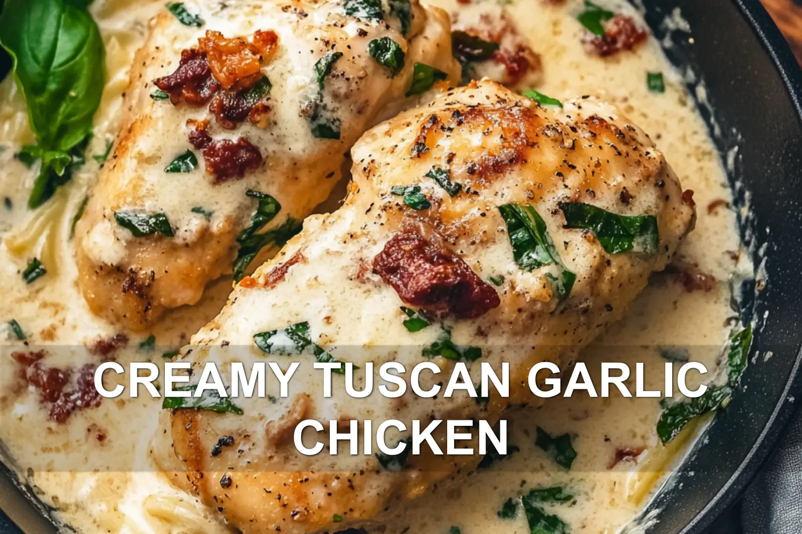 CREAMY TUSCAN GARLIC CHICKEN centered hero view, clean and uncluttered