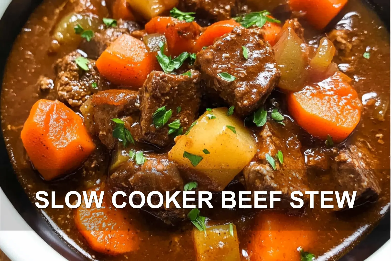 SLOW COOKER BEEF STEW centered hero view, clean and uncluttered